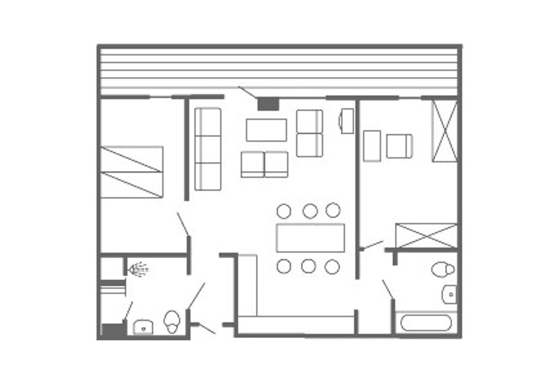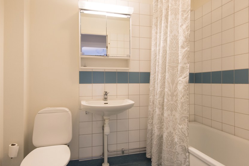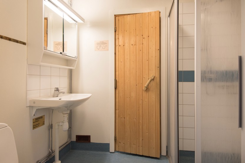 Badeværelset-1 = bruse/wc/sauna. Badeværelset-2 = badekar/wc.
