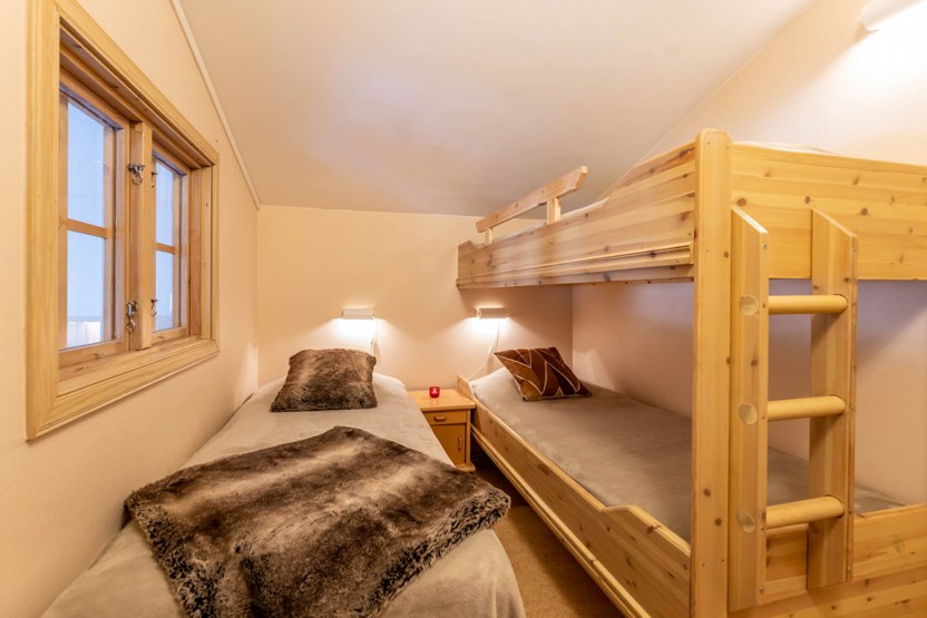 Soveværelse-1= 1 køjeseng med 120 cm bred underkøje , 1 enkeltseng. Soveværelse-2= 1 køjeseng og 1 enkeltseng. Trappe op til soveværelse.