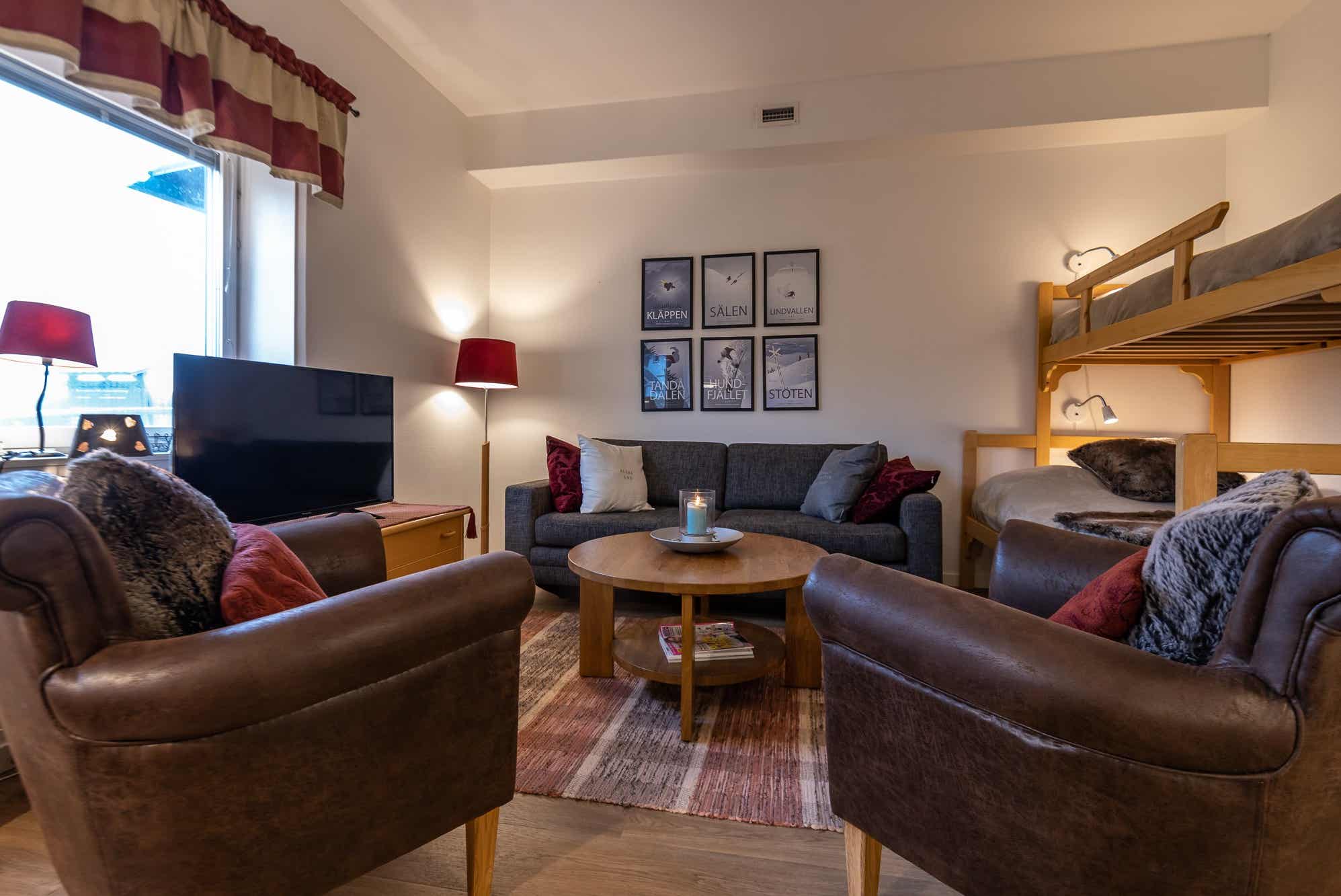 Meget tæt på lift og al tænkelig service. For dig, som vil have det hele tæt på, vil Hundfjällscenter passe fortræffeligt. Her findes lejligheder til alle selskaber i forskellig stil og størrelse, en del med udsigt mod bakken. Glideafstand til lifte, og restauranter i princippet uden for døren.