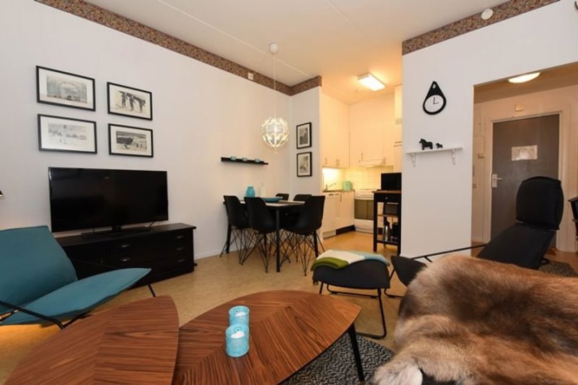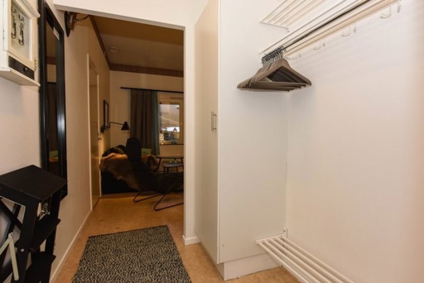 TV, tørreskab, rum til skiudstyr, udeplads (skovles ikke), Adgang til sauna og vaskerum, elevator findes i huset.