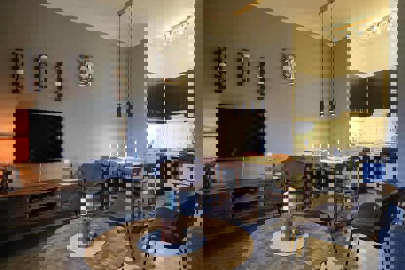 Opholdsstue med køkkenafdeling.