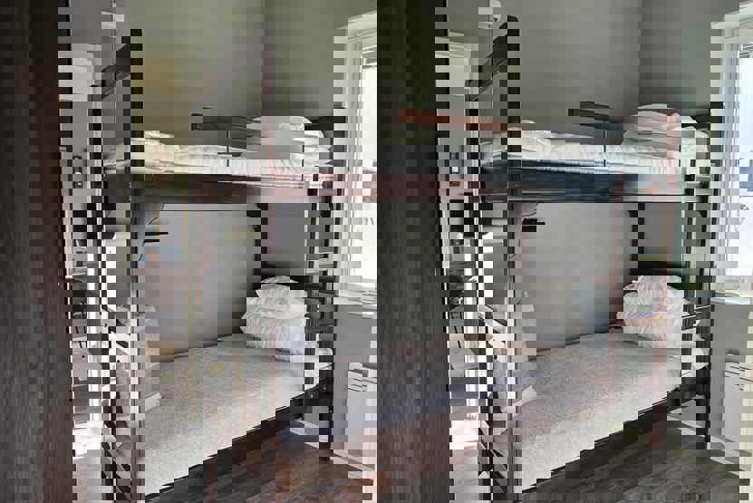 Soveværelse-1= 1 køjeseng, 1 køjeseng med 120 cm bred underkøje .