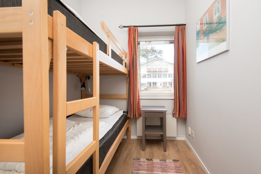 Soveværelse-1= 1 køjeseng, 1 køjeseng med 120 cm bred underkøje .