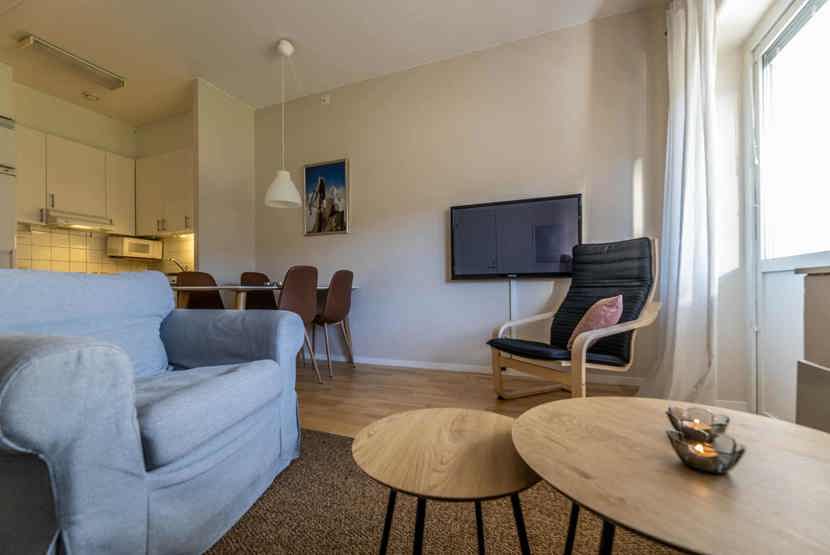 Opholdsstue med køkkenafdeling.