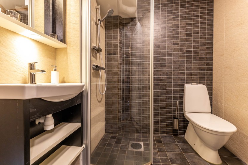 TV, tørreskab, rum til skiudstyr, udeplads (skovles ikke), Adgang til sauna og vaskerum, elevator findes i huset.