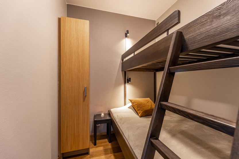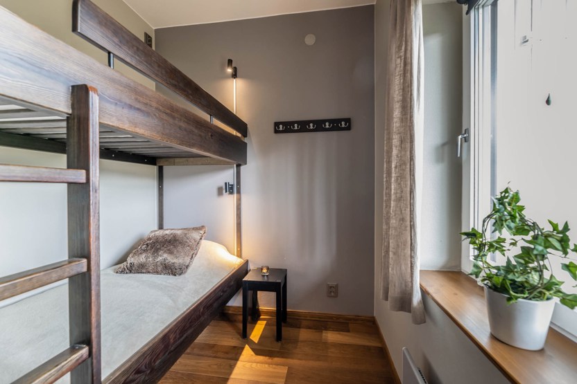 Soveværelse-2 (uden vindue)= 1 køjeseng med 120 cm bred underkøje .