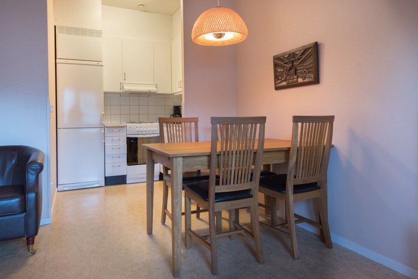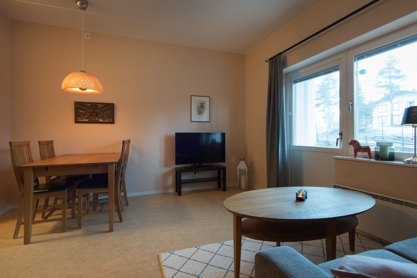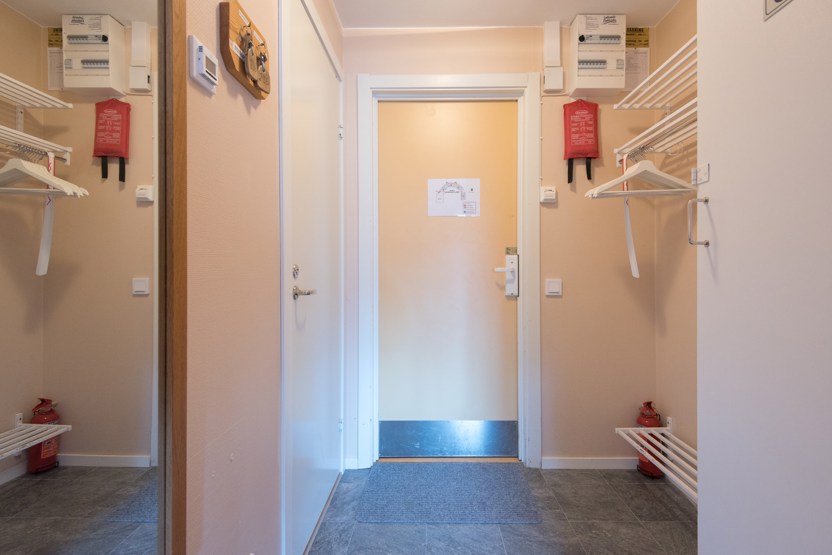TV, tørreskab, rum til skiudstyr, udeplads (skovles ikke), Adgang til sauna og vaskerum, elevator findes i huset.