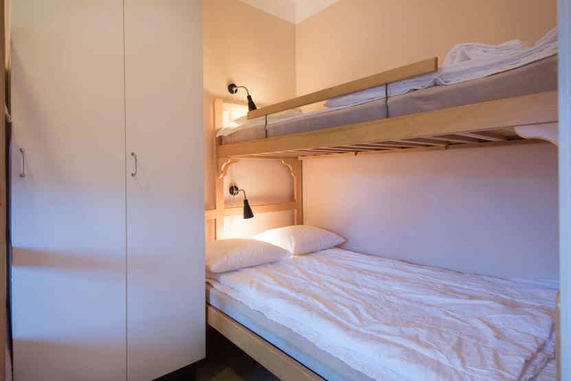 Soveværelse-1= 1 køjeseng, 1 køjeseng med 120 cm bred underkøje .