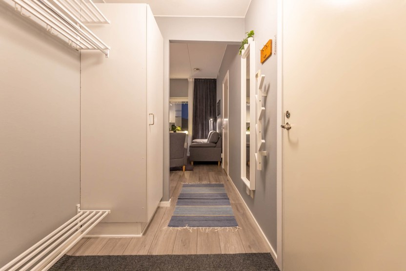 TV, tørreskab, rum til skiudstyr, balkon, Adgang til sauna og vaskerum, elevator findes i huset.