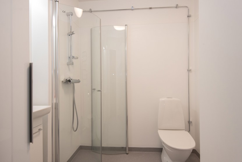 Badeværelset-1 = bruse/wc/håndklædetørrer.