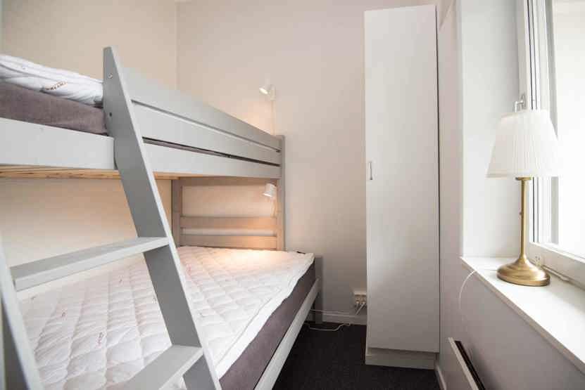 Soveværelse-2 (uden vindue)= 1 køjeseng med 120 cm bred underkøje .