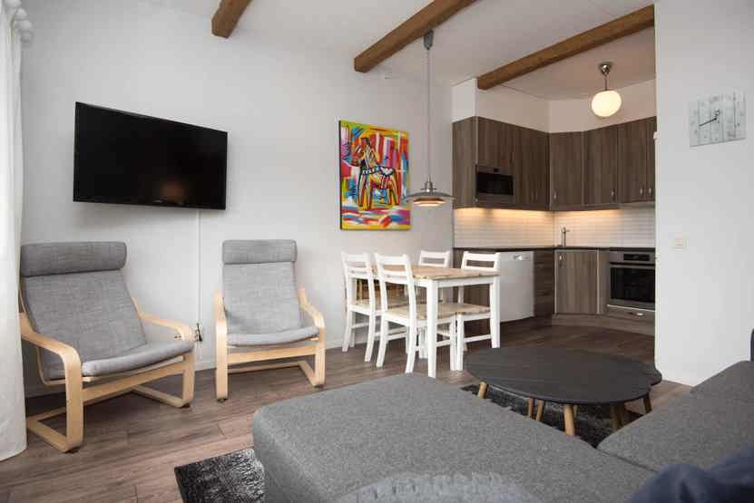 Opholdsstue med køkkenafdeling.