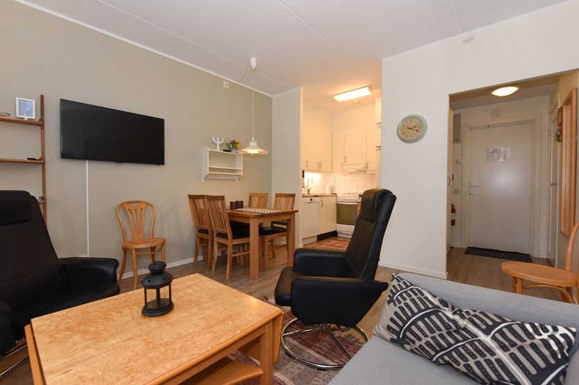 TV, tørreskab, rum til skiudstyr, balkon, Adgang til sauna og vaskerum, elevator findes i huset.