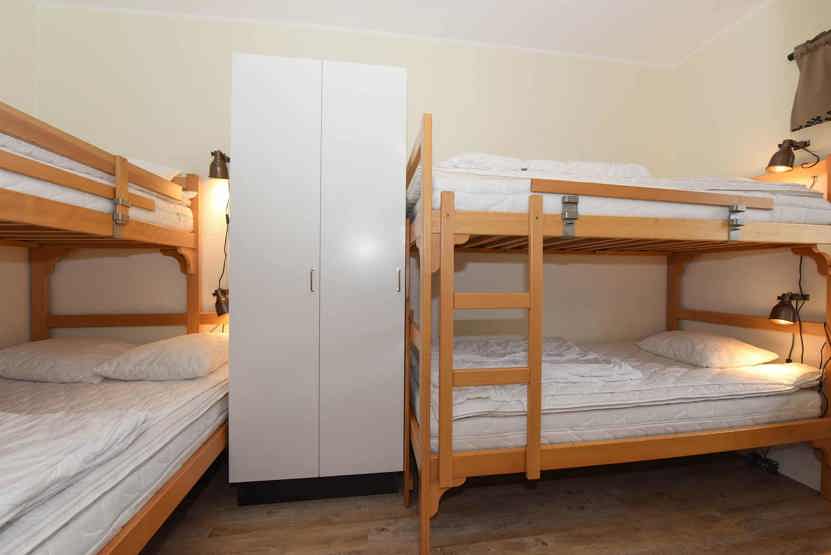 Soveværelse-1= 1 køjeseng med 120 cm bred underkøje , 1 køjeseng.
