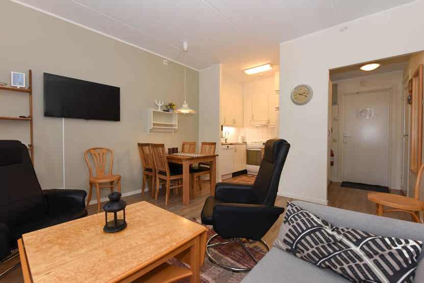 TV, tørreskab, rum til skiudstyr, balkon, Adgang til sauna og vaskerum, elevator findes i huset, 1 parkeringsplads.