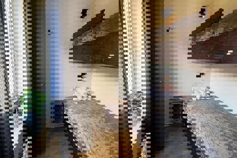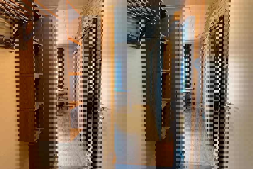 Soveværelse-1= 1 køjeseng med 120 cm bred underkøje . Soveværelse-2= 1 køjeseng, i værelse uden vindue.