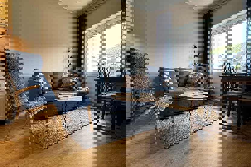 Opholdsstue med køkkenafdeling.