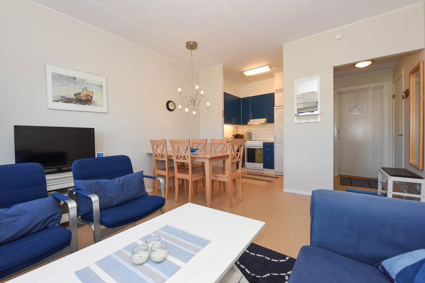 TV, tørreskab, rum til skiudstyr, balkon, Adgang til sauna og vaskerum, elevator findes i huset.