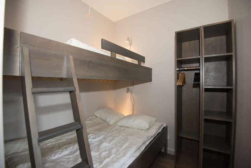 Soveværelse-1= 1 køjeseng, 1 køjeseng med 120 cm bred underkøje .