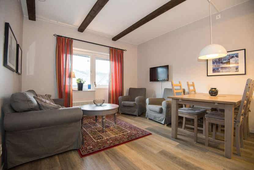 TV, tørreskab, rum til skiudstyr, balkon, Adgang til sauna og vaskerum, elevator findes i huset, 1 parkeringsplads.