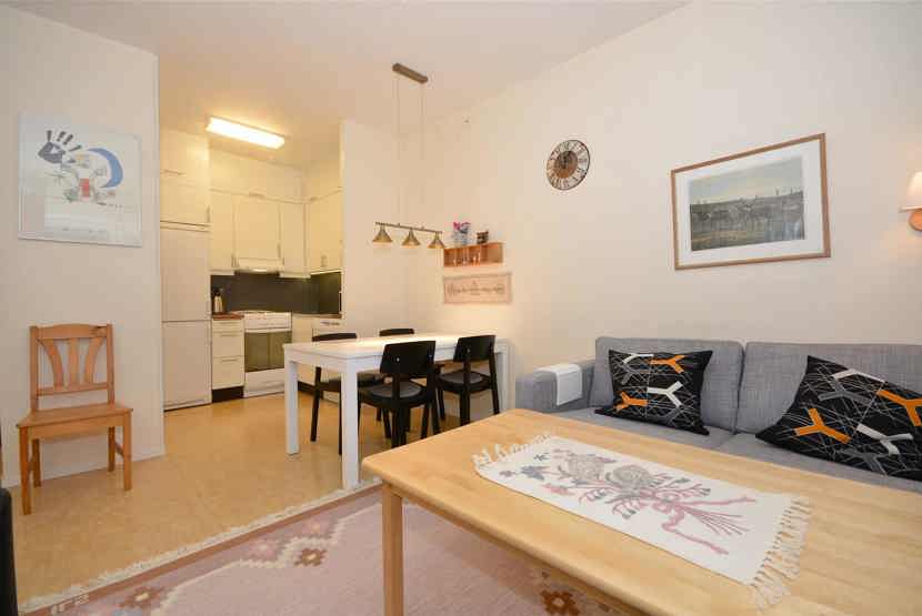 Opholdsstue med køkkenafdeling.