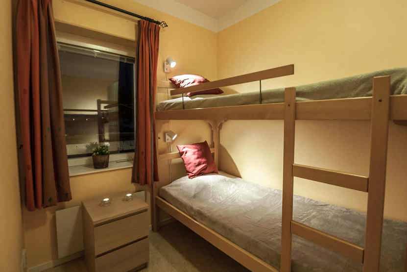 Soveværelse-1= 1 køjeseng, 1 køjeseng med 120 cm bred underkøje .