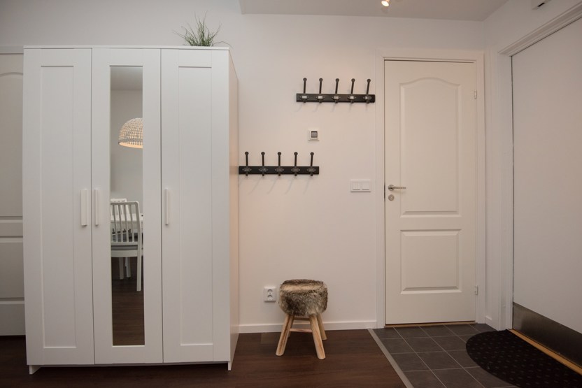 TV, tørreskab, rum til skiudstyr, balkon, Adgang til sauna og vaskerum, elevator findes i huset.