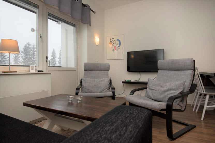 TV, tørreskab, rum til skiudstyr, balkon, Adgang til sauna og vaskerum, elevator findes i huset, 1 parkeringsplads.