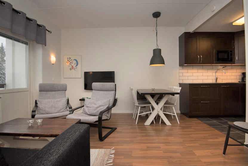 Hundfjällscenter ligger i Hundfjället. Lejlighed, 4 sengepladser, 36 m², alrum med køkkenafdeling, 1 soveværelse, 1 bruser, 1 WC, adgang til fælles sauna.
