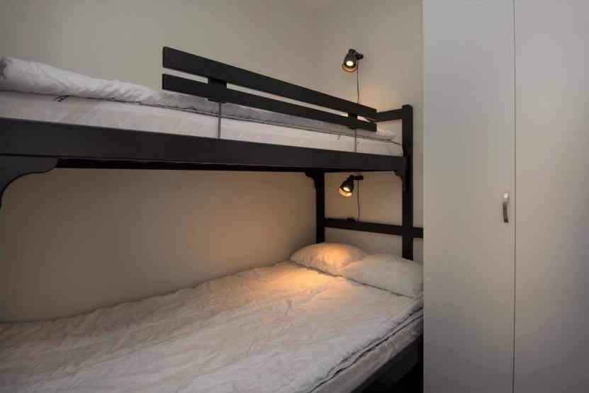Soveværelse-1= 1 køjeseng med 120 cm bred underkøje , 1 køjeseng.