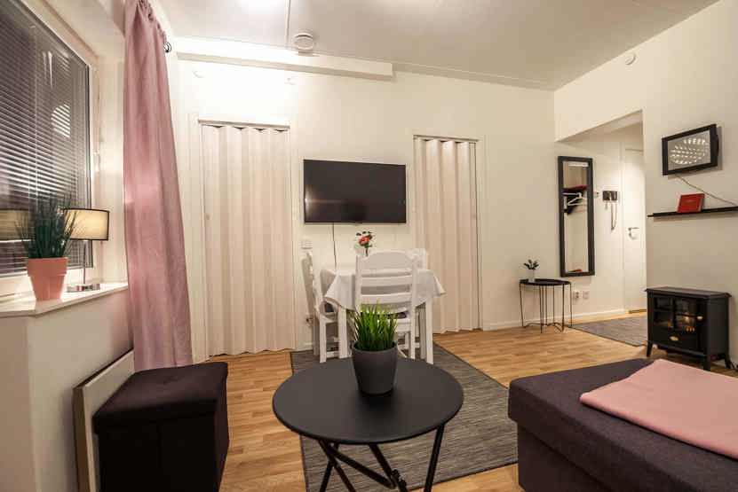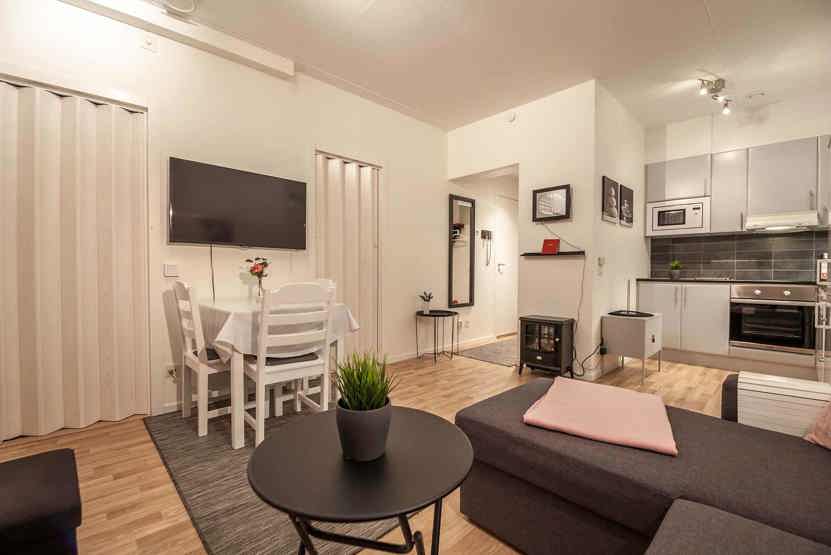 Opholdsstue med køkkenafdeling.