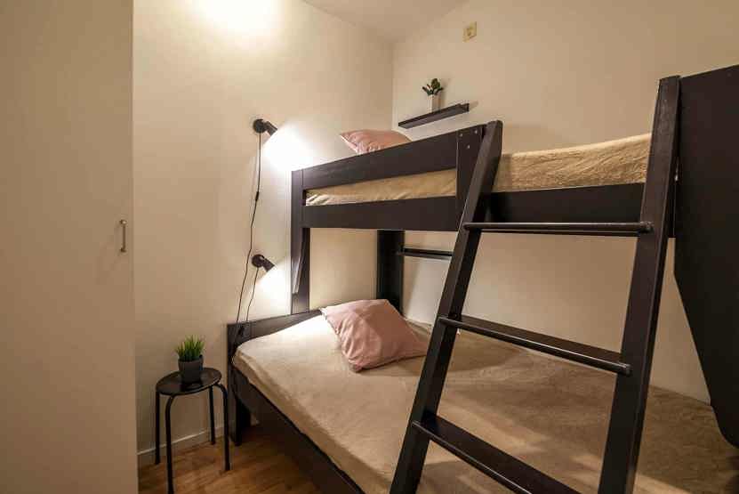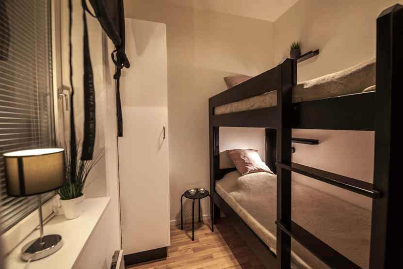 Soveværelse-2 (uden vindue)= 1 køjeseng med 120 cm bred underkøje .