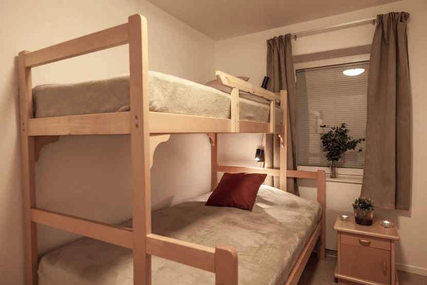 Soveværelse-1= 1 køjeseng, 1 køjeseng med 120 cm bred underkøje .