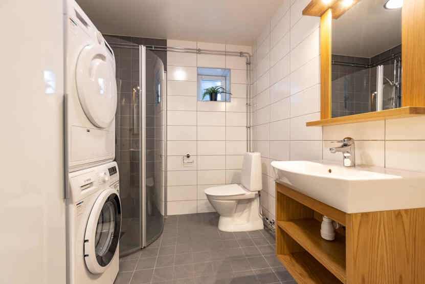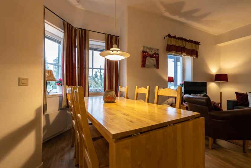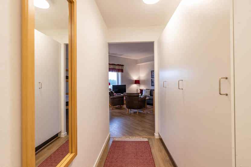 TV, vaskemaskine, tørretumbler, tørreskab, rum til skiudstyr, ingen balkon, Adgang til sauna og vaskerum, elevator findes i huset, 1 parkeringsplads.