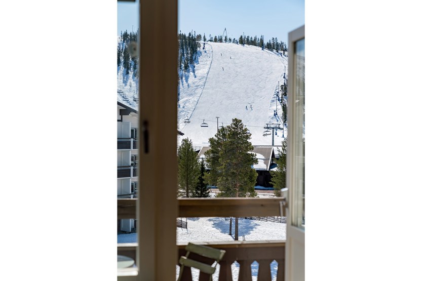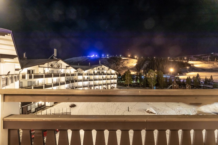 lavt til loftet i den øverste køje i køjeseng velegnet til børn, TV, tørreskab, elevator findes i huset, Adgang til sauna og vaskerum, rum til skiudstyr, balkon.