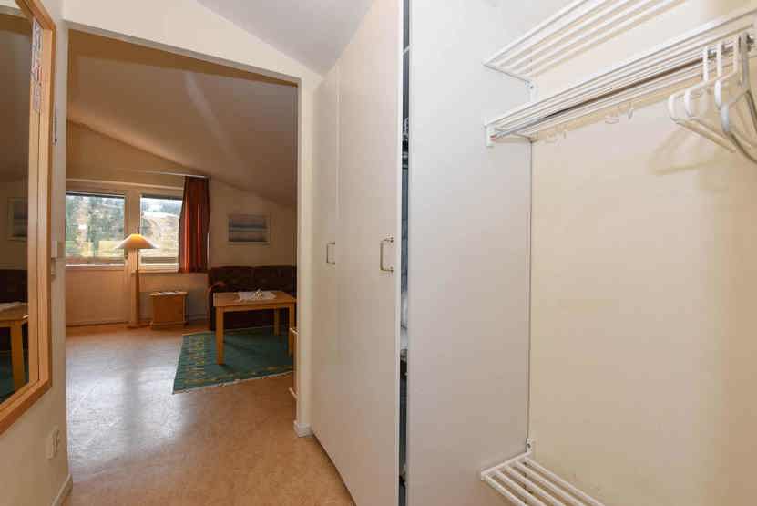TV, tørreskab, rum til skiudstyr, balkon, Adgang til sauna og vaskerum, lavt til loftet i den øverste køje i køjeseng velegnet til børn, elevator findes i huset, 1 parkeringsplads.