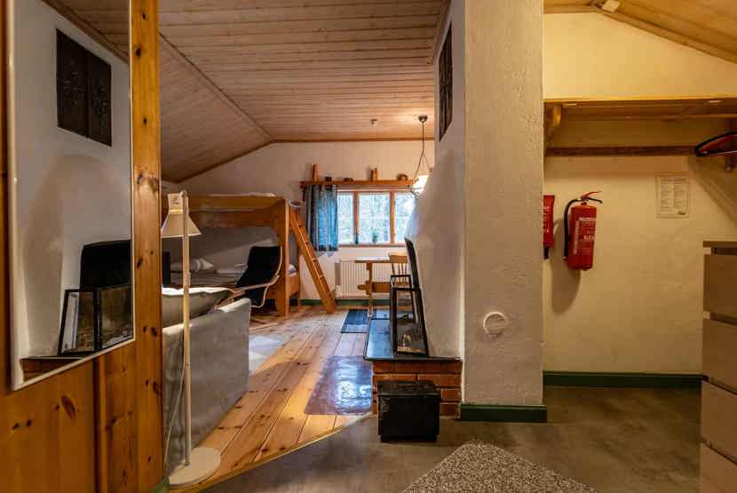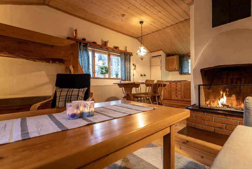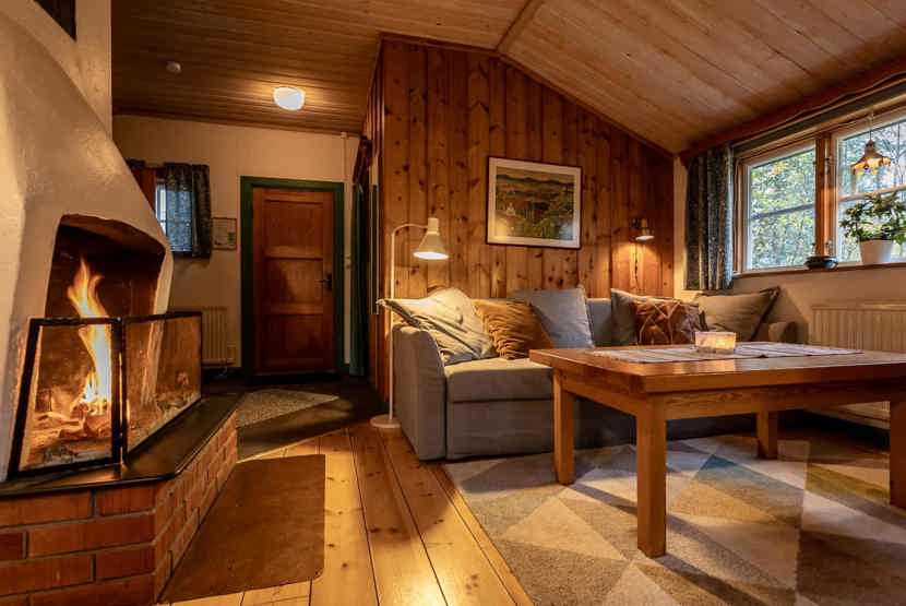 Opholdsstue med køkkenafdeling, 1 køjeseng. TV, åben pejs (brænde indgår ikke).