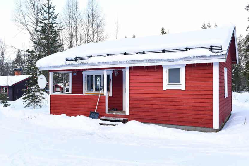 Joängsslingan / Närfjällsbyn ligger ved Hundfjället. Fritstående hytte, 2+2 sengepladser, 31 m², alrum med køkkenafdeling, 1 bruser, 1 WC.