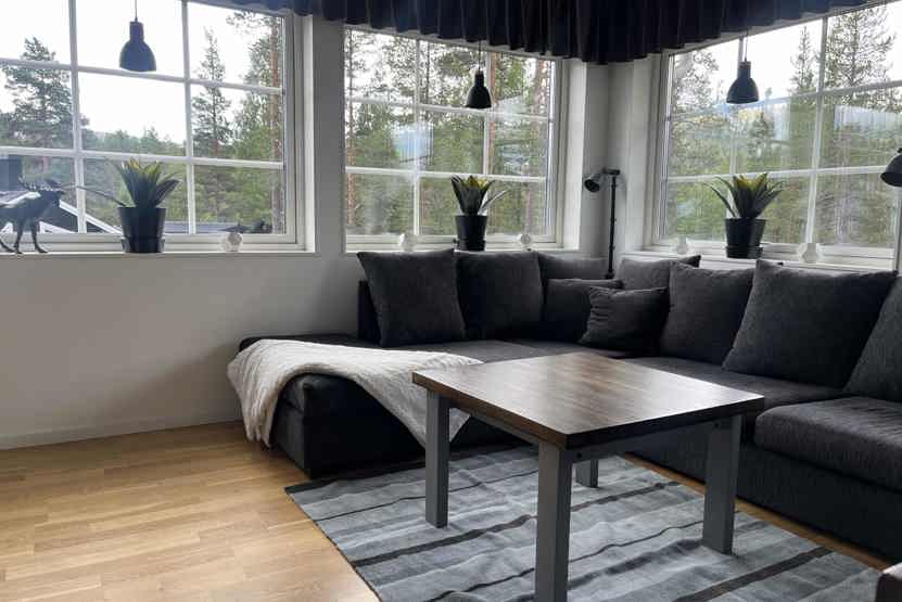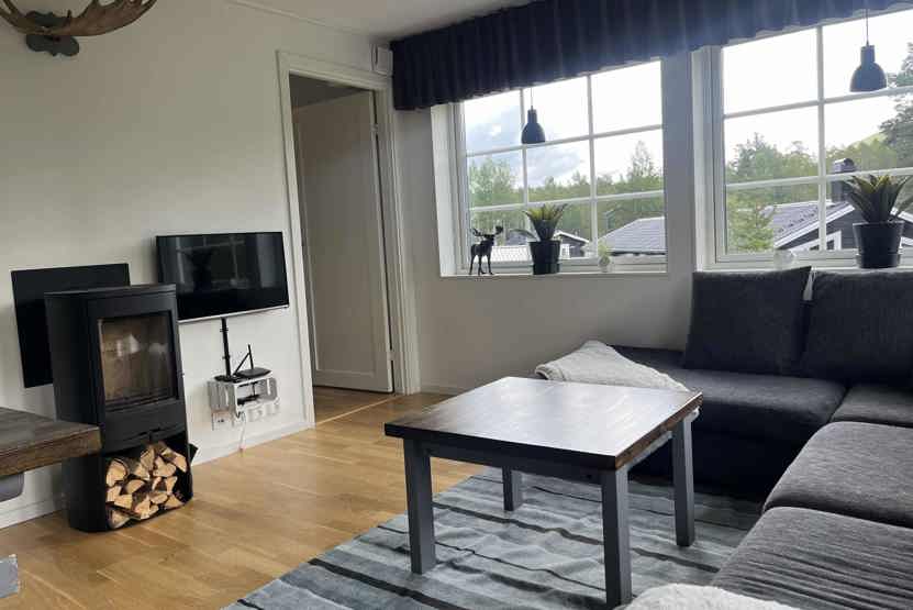 Opholdsstue med køkkenafdeling. TV, brændeovn (brænde indgår ikke), tørreskab, vaskemaskine, rum til skiudstyr, adgang til elbilopladere med type 2 stik mod betaling.