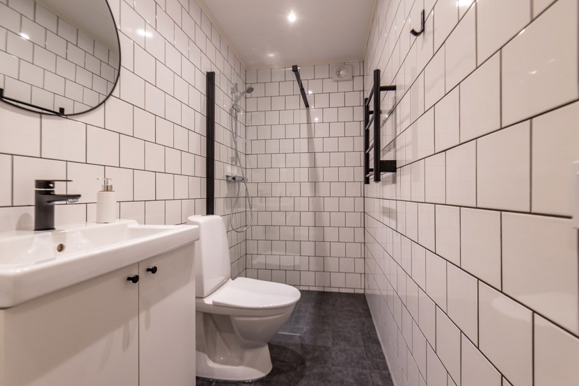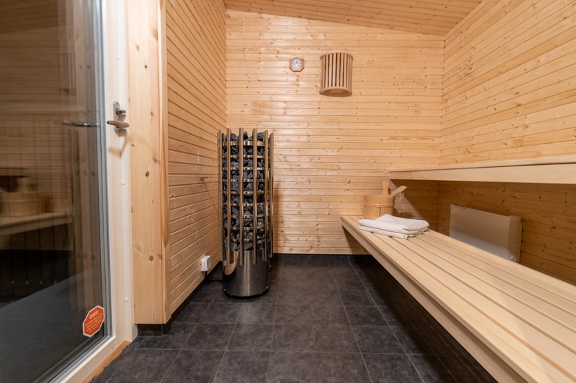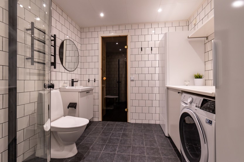 Badeværelset-1 = bruse/wc/sauna. Badeværelset-2 = bruse/wc.