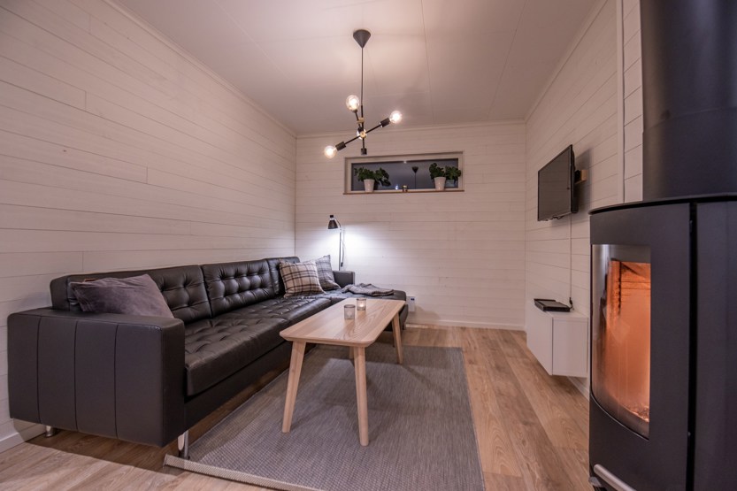 Opholdsstue med køkkenafdeling. TV, brændeovn (brænde indgår ikke), tørreskab, kombineret vaskemaskine/tørretumbler, altan (skovles ikke), rum til skiudstyr, 1 parkeringsplads.
