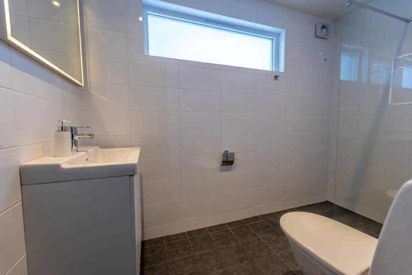 Badeværelset-1 = bruse/wc/sauna, Badekar. Badeværelset-2 = bruse/wc.