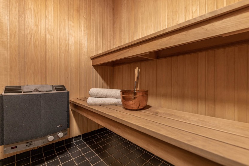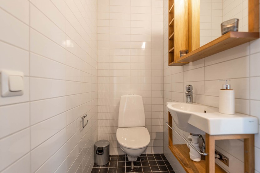 Badeværelset-1 = bruse/wc/sauna. Badeværelset-2 = wc.