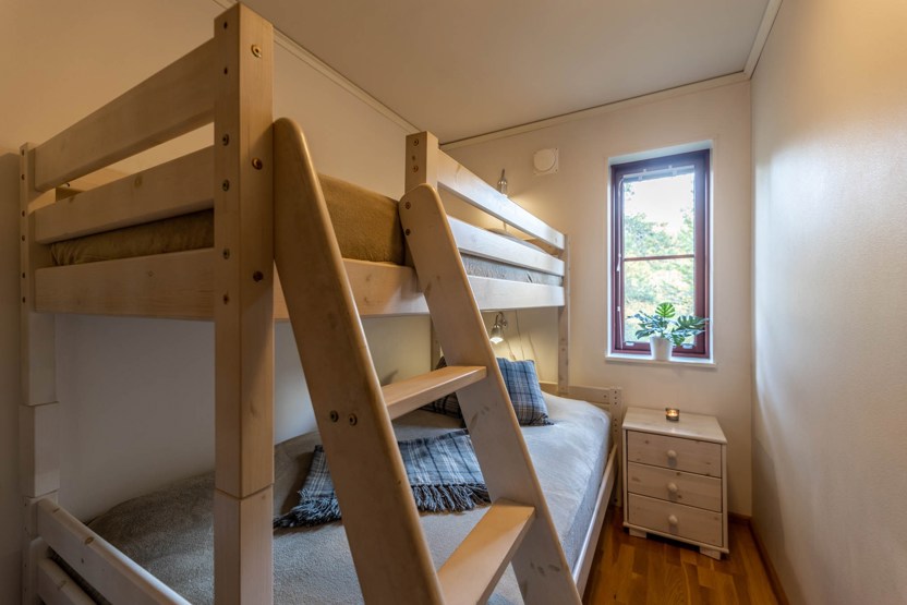 Soveværelse-1= 1 køjeseng med 120 cm bred underkøje . Soveværelse-2= 2 køjesenge. Soveværelse-3= 1 dobbeltseng.