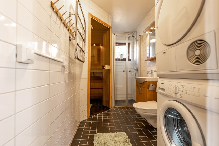 TV, brændeovn (brænde indgår ikke), tørreskab, vaskemaskine, tørretumbler, balkon, rum til skiudstyr, håndklædetørrer.