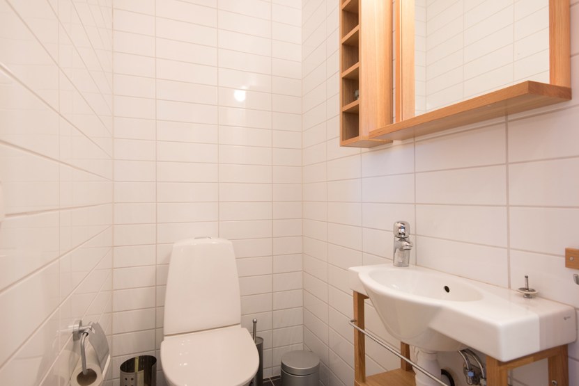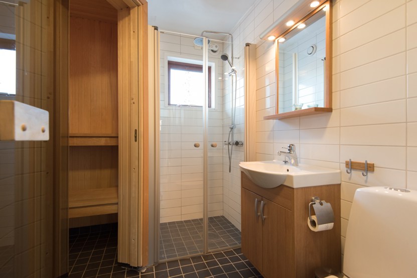 Badeværelset-1 = bruse/wc/sauna. Badeværelset-2 = wc.