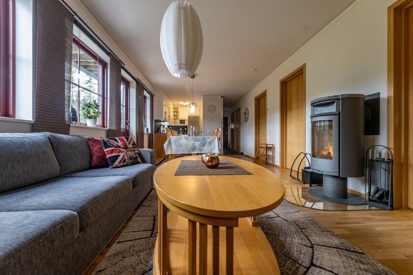 TV, brændeovn (brænde indgår ikke), tørreskab, vaskemaskine, tørretumbler, skistøvletører, rum til skiudstyr, altan (skovles ikke), adgang til elbilopladere med type 2 stik mod betaling.