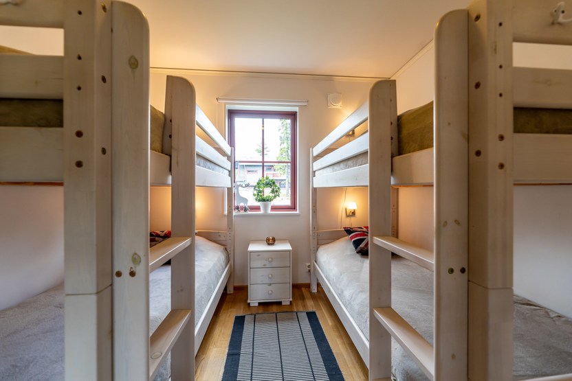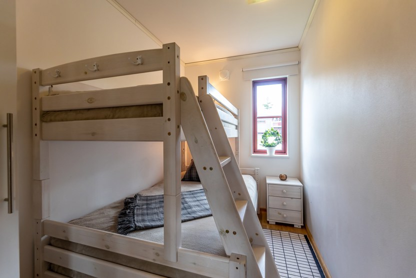 Soveværelse-1= 1 køjeseng med 120 cm bred underkøje . Soveværelse-2= 2 køjesenge. Soveværelse-3= 1 dobbeltseng 160 cm bred.