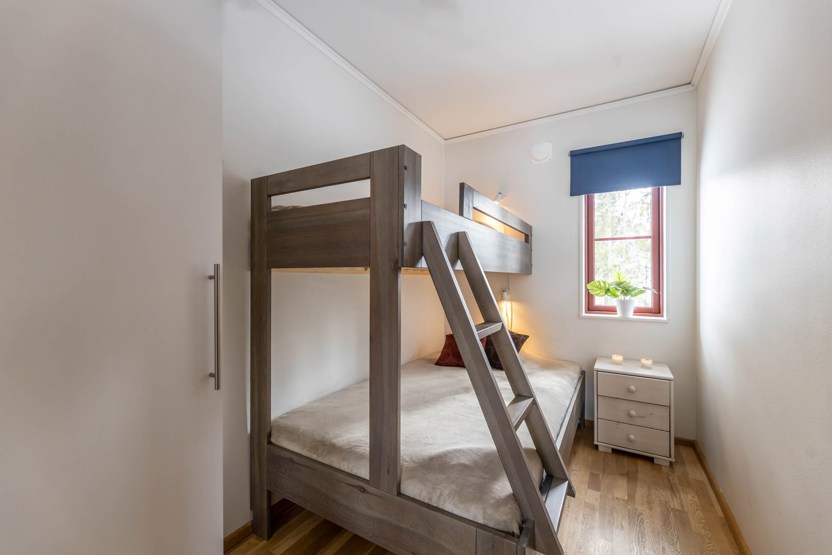 Soveværelse-1= 1 køjeseng med 120 cm bred underkøje . Soveværelse-2= 2 køjesenge. Soveværelse-3= 1 dobbeltseng.