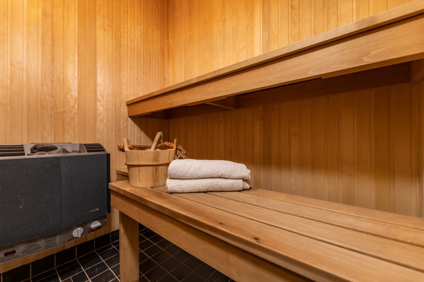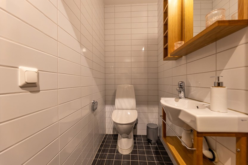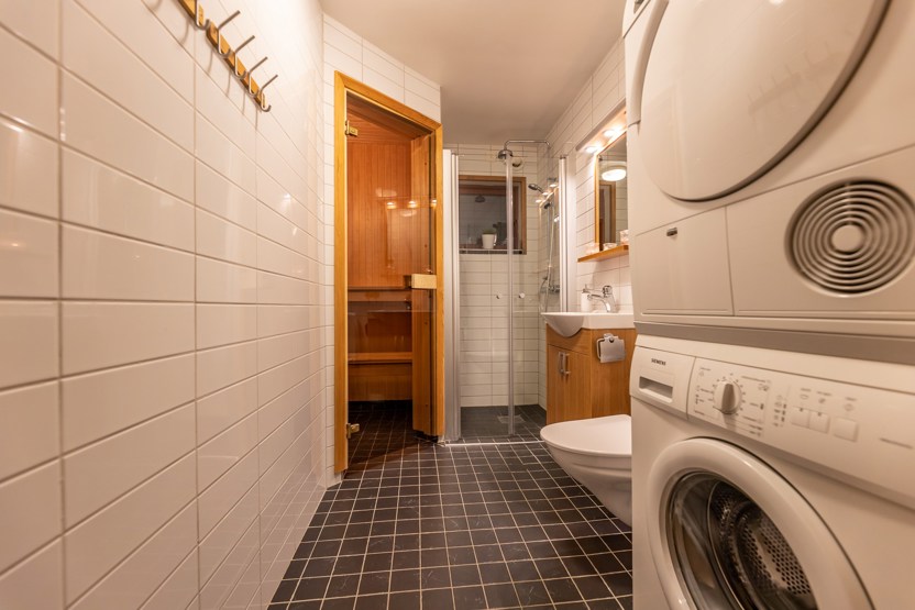 Badeværelset-1 = bruse/wc/sauna. Badeværelset-2 = wc.